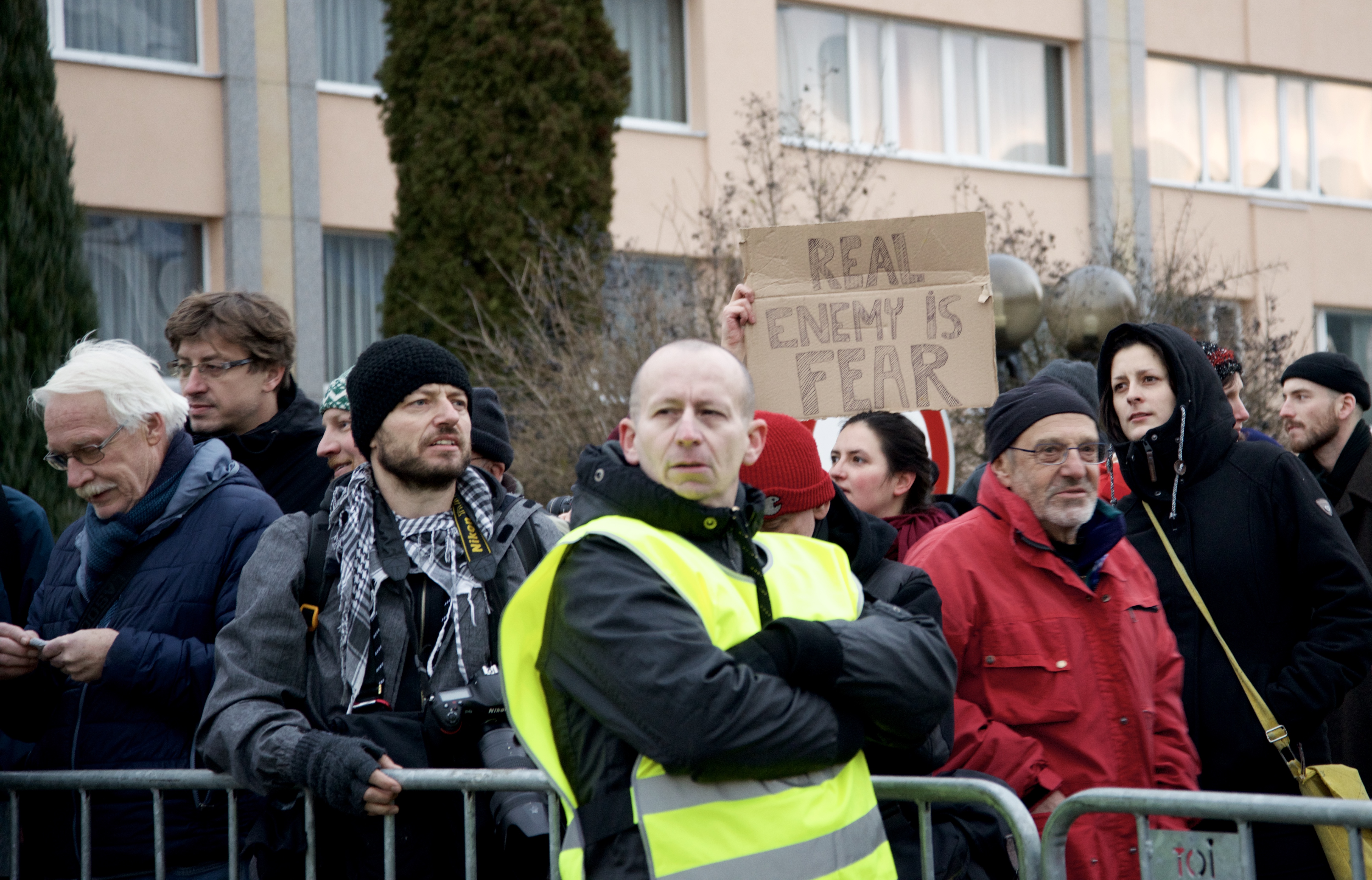 وتجمَّع حوالي ٢٠٠ متظاهر خارج مقر المؤتمر الذي عُقد في فندق في إحدى ضواحي براغ، حيث كانوا يقفون في انتظار قادة الأحزاب اليمينية ويرفعون اللافتات ويُرددون الشعارات المناهضة لتلك الأحزاب ويقومون بقرع الطبول. واتسمت الاحتجاجات بمظاهرها السِلمية، رغم وجود أعدادٍ كبيرة من شُرطة مُكافحة الشغب والأمن، وذلك إِثر ما نَشرته الصُحف التشيكية مُسبقاً عن إن الاحتجاجات ستتخذ مظهراً عنيفاً.